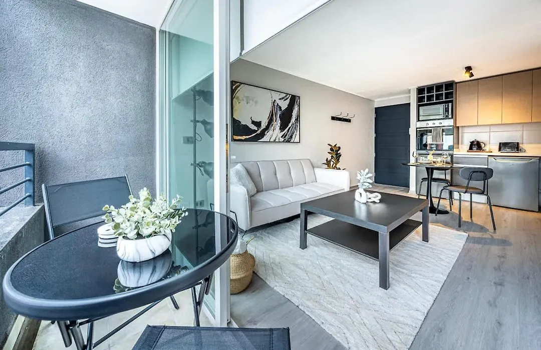 Com piscina privada, o Ht Luminoso Departamento Con Terraza Wifi Apartamento Santiago de 1 quartos está situado a cerca de 20 minutes a pé do Cerro Santa Lucía. O apartamento fica a apenas 1.6 km de Centro Cultural Gabriela Mistral.
